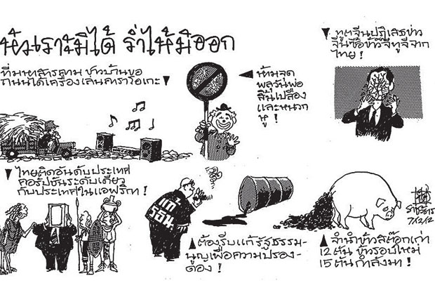 “ตอนนายกฯ อานันท์ มันยากตรงที่ว่า แกเป็นนายกฯ ในดวงใจ ซึ่งเราก็ชอบ เราศรัทธา อยากได้คนอย่างนี้มาเป็นนายกฯ และเราก็ไม่อยากโจมตี ก็เลยเขียนไม่ออก หรืออย่างคุณชวนเป็นนายกฯ เราก็เห็นว่าเป็นนายกฯ ที่เราอยากได้ เป็นคนซื่อสัตย์สุจริต ก็เลยเขียนไม่ออก เลยไม่มีมุขจะล้อ เพราะนักเขียนการ์ตูนถ้าจะให้เขียนให้สนุกก็คือ นักการเมืองขี้โกงในยุคคอร์รัปชั่น แต่พอไม่มีสิ่งเหล่านี้เราก็เขียนไม่ออก”