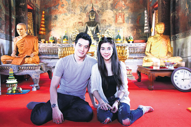 ในแต่ละวันแทบไม่ได้อยู่ด้วยกันสักเท่าไรเลยนะครับ วันนี้มีโอกาสได้มาทำบุญด้วยกันก็เลยรีบรับงานแบบนี้กันเลย เพราะวันๆ ผมก็อยู่แต่ในกองถ่าย วันไหนกองอยู่โลเกชันใกล้ๆ วุ้นก็จะขับรถไปหาสักแป๊บหนึ่ง หรือถ้าเลิกเร็วก็รับกลับบ้านกันเลย แต่โดยส่วนใหญ่กว่าเสร็จงานกลับถึงบ้านก็ 45 ทุ่มนะครับ ผมกลับมาก็ติดซีรีส์กินช็อกโกแลต กว่าจะนอนก็หลังเที่ยงคืน วุ้นน่ารักจะไม่นอนก่อนเลย จะรอผม นี่ละ ที่ทำให้หายเหนื่อยครับ
