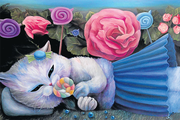กระนั้น แม้จะเป็นผลงาน 2 ส่วนที่คาบเกี่ยว 2 ช่วงเวลา ทว่าสาระที่เธอนำเสนอก็ดูจะสอดคล้องไปในแนวทางเดียวกัน ภายใต้ธีมความหมาย ความรู้สึก และจินตนาการ อันมีกรอบแห่งความฝันเป็นเดิมพัน น่าสนใจคือว่า เธอใช้แมวเป็นตัวเอกในทุกๆ เฟรมผ้าใบ