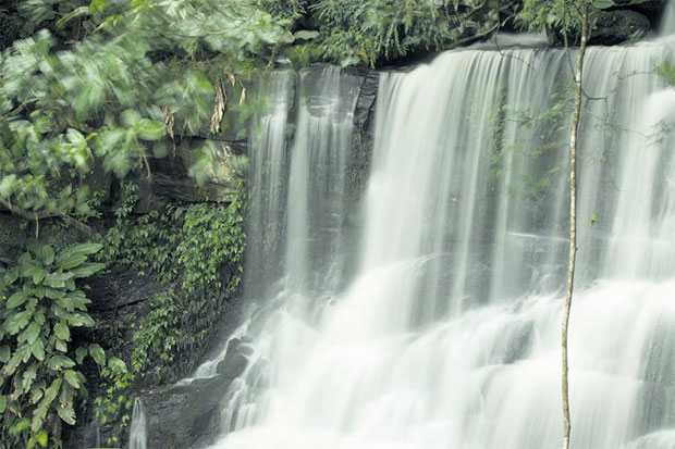 ทากที่บินได้ผมก็เพิ่งพบที่นี้แหละครับ มันมีความสามารถในการดีดตัวจากต้นไม้เข้าใส่ตัวเรา การป้องกันคงไม่ใช่เพียงแค่ปลอกกันทากที่สวมบริเวณเท้าจนถึงหัวเข่าเพียงอย่างเดียวนะครับ คงต้องมีสเปรย์ฉีดป้องกันไปด้วยนะครับ เราใช้เวลาเดินผ่านป่ารกชันกว่าสามชั่วโมง เพื่อไปสู่ตัวน้ำตก ตลอดเส้นทางเราต้องเดินด้วยความระมัดระวังก็ยังไม่วายที่จะล้มลุกคลุกคลานได้แผลตามๆ กันไป แต่เมื่อเดินถึงบริเวณน้ำตก ความเหน็ดเหนื่อยก็หายไป
