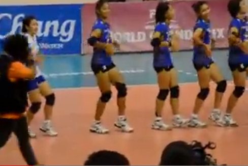 หลังจากนักตบรุ่นพี่ทีมชาติชุดใหญ่ นำโดย ปลื้มจิตร์ ถินขาว เคยเกาะกระแสเต้นกังนัม สไตล์ ระหว่างฝึกซ้อมก่อนเตรียมสู้ศึกเอเชี่ยนคัพ 2012 คราวนี้นักตบลูกยางยุวชนหญิงทีมชาติไทย ขอโชว์ลีลาเพลงไทยที่ดังไปทั่วโลกบ้าง หลังเอาชนะ ตูนีเซีย 3-0 เซต 25-22, 25-20, 25-12 ในนัดสุดท้ายรอบแรก ศึกชิงแชมป์โลก ยุวชน 18 ปี ที่นครราชสีมา วันที่ 30 ก.ค.