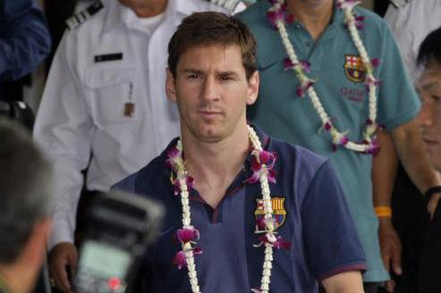 เมื่อวันที่ 5 ส.ค. ลิโอเนล เมสซี ซูเปอร์สตาร์บาร์เซโลนา นำผองเพื่อนสตาร์ดัง อาทิ ชาบี เอร์นานเดซ เนย์มาร์ อันเดรส อิเนียสตา และ เชส ฟาเบรกาส เดินทางถึงสนามบินดอนเมืองแล้วด้วยเครื่องบินเช่าเหมาลำซึ่งดีเลย์ถึง 2 ครั้ง จากเดิม 12.30 น. เป็น 13.50 น. และได้ลงจอดจริง 14.18 น. เนื่องจากสภาพอากาศ โดยมีสุวัจน์ ลิปตพัลลภ อดีตรองนายกรัฐมนตรีต้อนรับ
