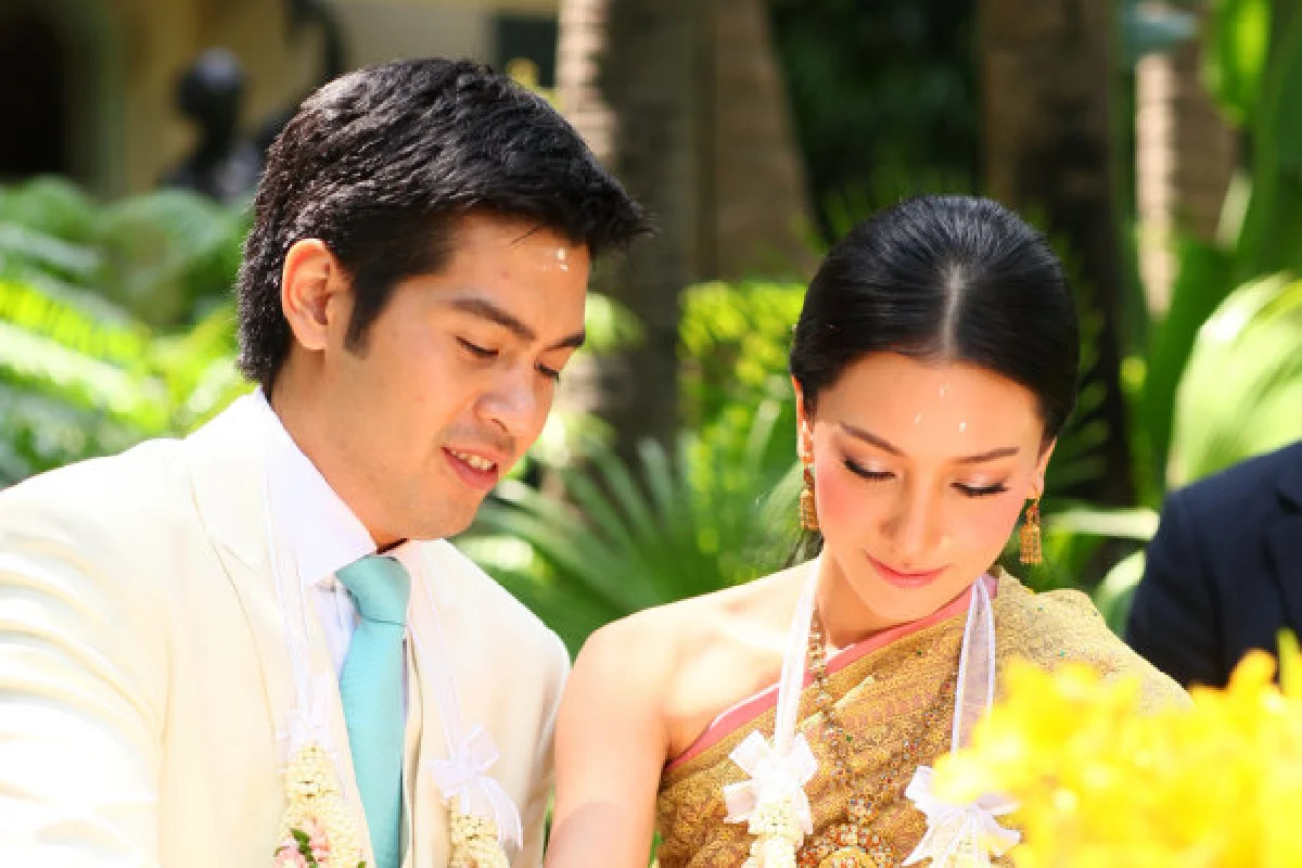 ทั้งคู่มีอายุห่างกันถึง 23 ปี แต่คู่นี้ก็ใช้ระยะทางพิสูน์ความรัก เพราะคบหากันมานานถึง 4 ปีกว่าจะตัดสินใจแต่งงานกัน สินสอดทองหมั้นนั้นแม้จะนับเม็ดเงินกันให้เห็นตัวเลขจะๆ ไม่ได้ แต่ดูจากคฤหาสน์หรูที่เป็นเรือนหอมีมูลค่า 500 ล้านบาท