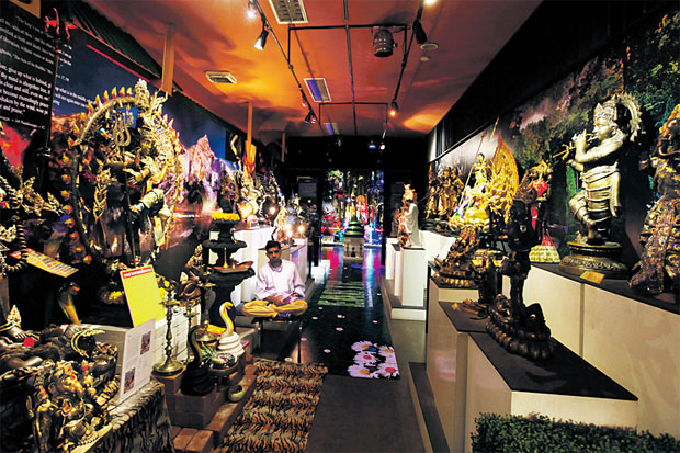 ก่อนที่พระพุทธศาสนาจะเผยแผ่มาถึงเอเชียตะวันออกเฉียงใต้นั้น มีจุดกำเนิดอยู่ที่ประเทศอินเดีย ซึ่งเจ้าหน้าที่จะเล่าให้เราฟังในห้องถัดไปคือ “ห้องอินเดีย” ภายในจัดแสดงพุทธศิลปะแบบอินเดีย มีองค์พระตรีมูรติลงทองเป็นองค์ประธานของห้อง นอกจากนี้ยังมีองค์เทพเคารพอีกมากมาย เช่น พระพิฆเนศที่ทำจากลาวาจากประเทศอินโดนีเซีย พระแม่ทุรคา พระแม่กาลีเหยียบพระศิวะ พระศิวะ พระขันธกุมารเทพเจ้าแห่งนักรบ พระกฤษณะ พระลักษมี เป็นต้น