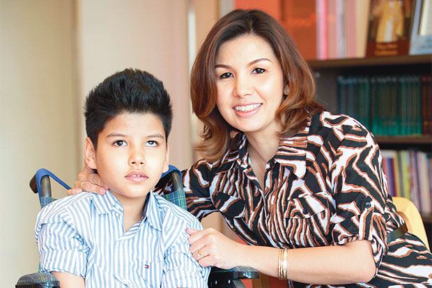 “เมื่อรู้ว่าลูกเราเป็นอย่างนี้ เราต้องเดินเข้าหาเขา แม่ตั้งใจค้นคว้าข้อมูลเพื่อช่วยทำให้เขาหายให้ได้ พาไปว่ายน้ำ ทำกายภาพตั้งแต่แปดโมงครึ่ง จนถึงห้าโมงเย็น ทำมาสามปี ดูแลเขาด้วยสองมือของเรา จนเขายืนได้ และเกาะวอล์กเกอร์จนเดินได้”