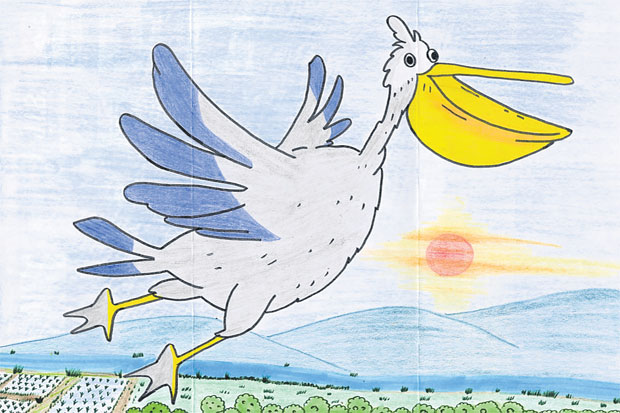 ผลงานแรกเป็นของ ด.ช.กฤษณ์ ศิลาบุตร น้องคนเก่งเจ้าประจำของเรา มาพร้อมกับผลงานเจ้านกเพลิแกน หรือนักล่าปากห้อยนั่นเอง และน้องก็ไม่ทำให้ผิดหวังเพราะทั้งการวาดและระบายสี ทำได้ดีเยี่ยมเหมือนเดิมจริงๆ ครับ