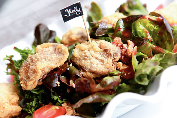 เมนูนี้ไม่ควรมองข้าม เคลลี่สลัด สลัดผักรวมที่เสิร์ฟมาพร้อมอกเป็ดทอดกรอบด้วยชีส ราดด้วยซอสราสพ์เบอร์รี เป็นสูตรพิเศษที่เข้าขากันด้วยดี เปรี้ยวมันพอดีคำ
