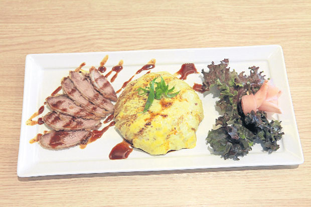 มาอีกเมนู คือ “ข้าวผัดซีอิ๊วญี่ปุ่นห่อไข่หน้าเป็ดล่อนทอด” ชื่อย้าวยาวแต่คนชอบก็ยังจำสั่งได้ไม่ผิดเพี้ยน จัดเป็นเมนูขายดิบขายดีอีกหนึ่ง เพราะทั้งรสชาติและการจัดจานถูกอกถูกใจลูกค้าวัยรุ่น ที่สำคัญเด็กๆ ชอบนักล่ะเมนูนี้