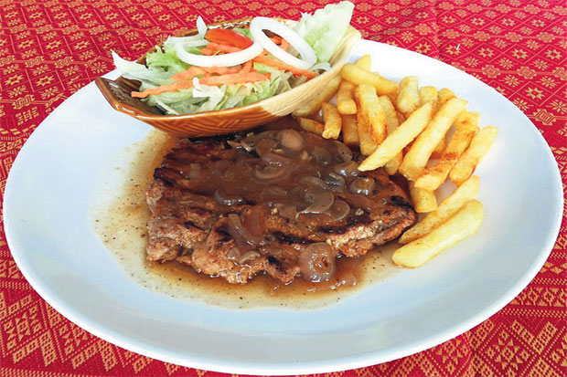 มาพูดถึงเรื่องกินที่อยากเล่ากันบ้างครับ เพราะที่เมืองสวรรคโลกแห่งนี้ นอกจากมีร้านอาหารชื่อดังขายดีอย่าง โจ๊กปาณี, เรือนก๋วยเตี๋ยวไทย, ข้าวแกงเจ๊น้อยร้อยล้าน, ร้านอาหารอ้อยบรั่นดี และร้านมุมกาแฟสดของเสี่ยตั๋ง “อภิรักษ์ อยู่สุข” รองนายกเทศมนตรีเมืองสวรรคโลก แล้วยังมีอีกแห่งที่เป็นร้านอาหารฝรั่ง คือ “สเต๊กเจ๊เพย”
