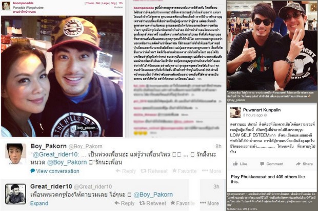 หลังงานเข้าครั้งใหญ่ เมื่อมีภาพหลุดบนเตียงนอนกับสาวปริศนา จนพระเอกหนุ่มคนดัง บอย-ปกรณ์ ฉัตรบริรักษ์ ต้องออกมาแถลงข่าวขอโทษแฟนๆทั้งน้ำตา ซึ่งดูเหมือนว่าคนดังในวงการบันเทิงเป็นจำนวนมาก แห่โพสต์ข้อความให้กำลังใจผ่านทางโซเชียลเน็ตเวิร์ก ไม่ว่าเฟซบุ๊ก อินสตาแกรม ทวิตเตอร์กันอย่างถล่มทลาย