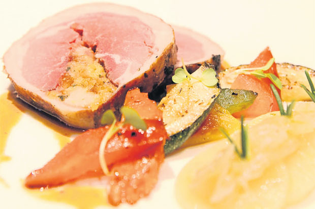 Roasted Lamb Saddle with Boulangere Potato and Grilled Vegetables เนื้ออานหลังแกะเบลเยียมอบ กับมันฝรั่งบูลองแชร์ เสิร์ฟกับผักย่าง