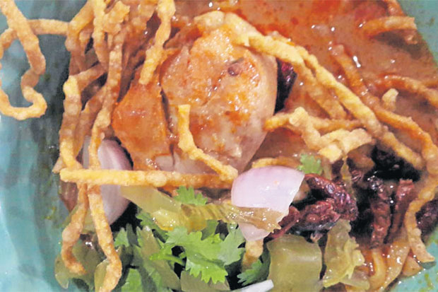 ข้าวซอยเนื้อของเขาก็เคี่ยวจนเนื้อเปื่อยนุ่มเข้ากับน้ำเข้มข้น เป็นเอกลักษณ์ของร้านนี้ เพราะร้านอื่นจะใช้เนื้อสด