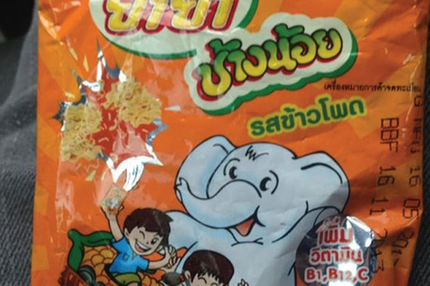 บะหมี่กึ่งสำเร็จรูป “ยำยำ ช้างน้อย” ถูกนำไปขายอยู่ในบริเวณใกล้เคียงกับโรงเรียนโดยเฉพาะโรงเรียนประถมศึกษา