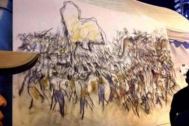 สำหรับผลงานชิ้นนี้ ศิลปินวาดกันสดๆ บนเวที ขนาดภาพ 2×3 เมตร วาดด้วยเทคนิคสีพาสเทล ท่ามกลางเสียงกลองยาวคอยให้จังหวะขณะตวัดฝีแปรง