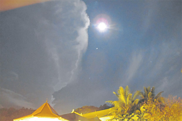 บนท้องฟ้ามีพระจันทร์ทรงกลดและเต็มดวง เนื่องในวันขึ้น 14 ค่ำเดือน 2 สาดแสงสว่างไสวทั่วท้องนภากาศ โดยมีดาวอีกดวงหนึ่งทอประกายระยิบระยับ ทำให้วิหารที่ประดิษฐานพระบรมธาตุเขี้ยวแก้วสว่างไสวไปด้วย ทันใดนั้นพวกเราเห็นกลุ่มเมฆขนาดใหญ่ที่ไม่น่าจะมีในคืนนั้น ได้เคลื่อนตัวดังพวงมาลามาบูชาพระบรมธาตุเขี้ยวแก้วด้วย ดังภาพที่ผู้เขียนใช้กล้องแคนนอน G 11 ถ่ายไว้ รวมทั้งเพื่อนร่วมคณะก็ถ่ายภาพนี้กันทุกคน (ที่มีกล้อง)