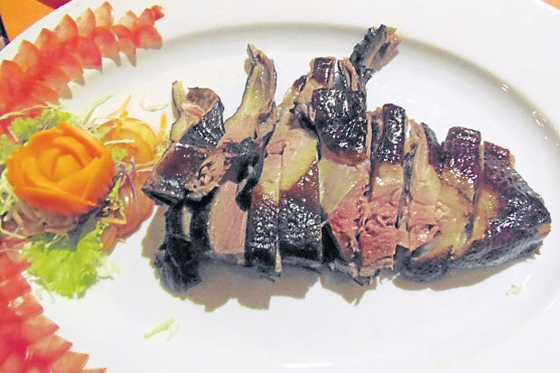 เช่น กุ้งต้มยำแห้ง น้ำพริกกุ้งสด หูฉลาม กระเพาะปลา กุ้งลายเสือซาซิมิ แซลมอนนึ่งซีอิ๊ว ขาหมูน้ำแดง ปลาเก๋านึ่งซีอิ๊ว ปูผัดพริกไทยดำ ปูผัดผงกะหรี่ ฯลฯ เป็นต้น ยังมีออเดิร์ฟร้อน (หอยจ๊อ กระเพาะปลาผัดแห้ง) หอยจ๊ออัดแน่นด้วยเนื้อปูล้วนๆ ค่ะ และมีเป็ดอบชานอ้อย แห่งเดียวในภูเก็ต ราคาอาหารตั้งแต่ 80450 บาท เครื่องดื่มมี ชา กาแฟ เบียร์ น้ำอัดลม และมีผลไม้บริการตามฤดูกาล