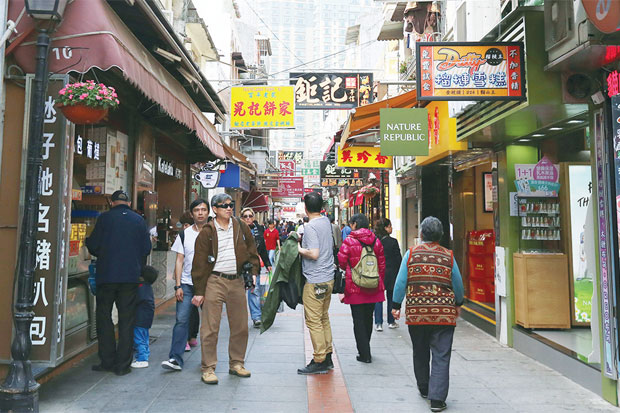 “ซื้อเพลิน” คือเหตุผลหลักของเวลาที่ใช้ไป ร้านขายอาหาร ขนม เครื่องดื่ม เปิดหน้าร้านเรียกลูกค้าทั้งสองฝั่ง คนที่กำลังลดความอ้วนอย่างจริงจังเท่านั้นที่สามารถผ่านมันไปได้อย่างรวดเร็ว แต่ละร้านจะวางอาหารหน้าตาน่ารับประทานไว้หน้าร้าน จัดไฟสีเหลืองให้อาหารดูนวลตา และที่สำคัญใช้กลวิธีให้ชิมฟรี ชิมแบบชิ้นใหญ่ คำโต แบบที่ถ้าชิมครบทุกร้านก็อิ่มได้ สินค้าขึ้นชื่อ เช่น หมูแผ่น ร้านที่ได้รับความนิยมชื่อ Pastelaria Koi Kei ส่วนรสชาติคงแล้วแต่ลิ้นส่วนบุคคล คุกกี้อัลมอนด์ อีกหนึ่งของฝากมาเก๊า ความฉุนเล็กน้อยของอัลมอนด์ทำให้คุกกี้ชนิดนี้ไม่เหมือนใคร ทาร์ตไข่ บนถนนฟู้ดสตรีทไม่มีทาร์ตไข่ในตำนานอย่าง Lord Stow's Bakery นั่นอยู่บนเกาะโคโลอาน แต่ที่นี่ก็มีร้านขายอยู่ รสชาติคล้ายทาร์ตไข่ผู้พันที่มีขายในประเทศไทย นอกจากนี้ยังมีร้านอาหารโปรตุกิส อาหารจีน คาเฟ่ และร้านกาแฟ เหตุผลซื้อเพลินจึงตามมาด้วย “กินเพลิน” ไปโดยปริยาย