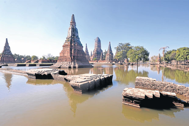 หนึ่งในนั้น คือ “วัดไชยวัฒนาราม” กำแพงทิศใต้แตก ทำให้น้ำทะลักเข้ามาตัววัด ก่อนจะละลุทะลวงไปยังพื้นที่อุทยานประวัติศาสตร์แห่งอื่นๆ
