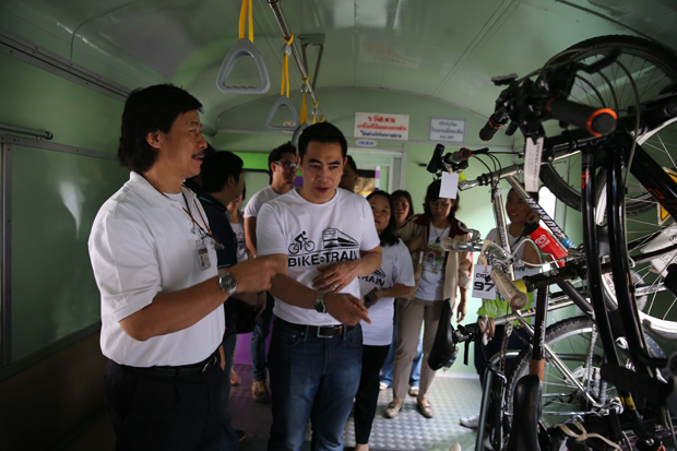 นิตยสารไซคลิ่ง พลัส ไทยแลนด์ ร่วมกับการรถไฟแห่งประเทศไทย จัดกิจกรรม “Bike by Train : ปั่นด้วยใจไปด้วยราง” พร้อมคุณประภัสร์ จงสงวน ผู้ว่าการรถไฟแห่งประเทศไทย คุณรังสิมา กสิกรานันท์ และคุณสิทธิเดช มัยลาภ ผู้บริหาร บริษัท โพสต์ อินเตอร์เนชั่นแนล มีเดีย จำกัด มาร่วมเป็นเกียรติเปิดงานในครั้งนี้ โดยการรถไฟแห่งประเทศไทยนำตู้รถไฟชั้น 3 มาประยุกต์ทำเป็นรถต้นแบบจอดรถจักรยานในแนวตั้งได้ สำหรับการจัดเก็บจักรยานโดยเฉพาะเพื่อโดยสารท่องเที่ยวไปตามจังหวัดต่างๆ เพื่อร่วมฉลองครบรอบ 117 ปีการรถไฟแห่งประเทศไทย นักปั่น ร่วมทริปครั้งนี้มาจาก117 ท่านแรกที่สมัครเข้ามาขอร่วมทริปกับทาง FACEBOOK ของนิตยสารไซคลิ่ง พลัส ไทยแลนด์