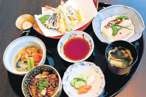จานต่อมา นิโมโนะ ของต้มที่ประกอบด้วย มะเขือยาว มันฝรั่ง แครอต ฟองเต้าหู้ กุ้งซากุระ และผักฟุกิโระที่มีเฉพาะในฤดูใบไม้ผลิ รสชาติจะนุ่มๆ เพิ่มรสชาติด้วยซอสกุ้งซากุระ และเมนูที่คุ้นเคยเทมปุระ ที่มีทั้งกุ้ง ใบโอบะ มะเขือยาว หน่อไม้ฝรั่ง ปลาฮิเมจิ และก็เห็ดชิตาเกะ ทอดนุ่มมากำลังดี