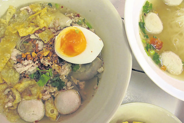 มาที่ร้านนี้แนะนำให้สั่งก๋วยเตี๋ยวหมูต้มยำโบราณ ทั้งไส้ เครื่องใน หมูสับใส่ไม่แบบไม่อั้น และที่ขาดไปเสียไม่ได้ก็คือลูกชิ้นหมูฮีโร่ ตามมาด้วยหมูเด้งและยังมีไข่มะตูมใส่มาให้อีกต่างหาก น้ำซุปปรุงรสมาเสร็จสรรพแทบไม่ต้องปรุง หอมกลิ่นถั่วคั่วและน้ำมะนาวฟุ้งมาเชียวครับ อร่อยมากๆ