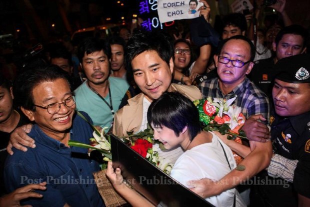 เมื่อวันที่ 20 ก.ค. เวลาประมาณ 22.30 น. เช ยอง ซอก หัวหน้าผู้ฝึกสอนเทควันโดทีมชาติไทยชาวเกาหลีได้เดินทางมาถึงท่าอากาศยานสุวรรณภูมิโดยสายการบินเอเชียน่า เที่ยวบินที่ OZ741 ท่ามกลางประชาชนจำนวนมากที่มารอต้อนรับ รวมทั้ง นายปรีชา ต่อตระกูล อุปนายกสมาคมเทควันโดแห่งประเทศไทย และ น.พ.ทศพร เสรีรักษ์ ที่ปรึกษากิติมศักดิ์สมาคมเทควันโดแห่งประเทศไทยไทย พร้อมตัวแทนจากสมาคม รวมทั้ง น้องวิว-เยาวภา บุรพลชัย อดีตฮีโร่เหรียญทองแดงโอลิมปิกเกมส์ 2004 สอง-บุตรี เผือดผ่อง เจ้าของเหรียญเงินโอลิมปิกเกมส์ 2008 ก็เดินทางมาต้อนรับเช่นกัน โดยมีสื่อมวลชนมารอทำข่าวเป็นจำนวนมาก