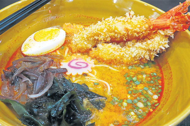 มาว่ากันถึงอาหาร อย่างที่บอกร้านนี้ขายอาหารญี่ปุ่น เมื่อมาถึงเจ้าของร้านจะแนะนำเลยคือเมนูราเมนเพราะเจ้าของไปเรียนมาจนได้สูตรราเมนรสตำรับญี่ปุ่น ที่อร่อยทั้งเส้น อร่อยทั้งน้ำซุป เป็นเคล็ดลับสูตรพิเศษที่เด็ดตรงน้ำซุปซึ่งผ่านการเคี่ยวนานหลายชั่วโมง จนได้เป็นซุป 4 สหาย คือน้ำซุปโชยุ (ซีอิ๊วญี่ปุ่น) น้ำซุป มิโซะ (เต้าเจี้ยว) น้ำซุปทงคัตสึ (น้ำต้มหมู) และน้ำซุปต้มยำน้ำข้น นอกจากนั้นก็มีให้เลือกหลากหน้าไม่ว่าจะเป็น ราเมนหน้าหมูชาชู ราเมนหน้าไก่เทริยากิ ราเมนหน้าหมูทอด ราเมนปลาทอด ราเมนกุ้งทอด ซึ่งหากมาครั้งแรกเลือกหน้าไม่ถูกแนะนำ “ราเมนกุ้งทอดซุปต้มยำน้ำข้น” ซึ่งรสชาติบอกเลยว่า คนไทยยกซดแล้วต้องยิ้ม