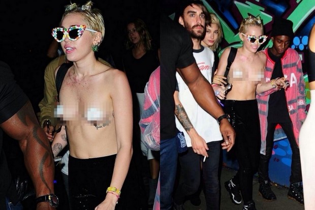 นักร้องสาวสุดซ่าบ้าระห่ำ "ไมลี่ย์ ไซรัส" เปลือยอกปิดจุกสุดเซ็กซี่ ร่วมงานปาร์ตี้ ไม่แคร์สายตาคนมอง