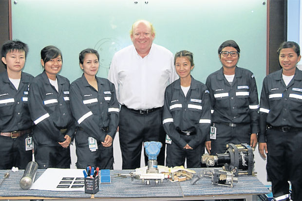 “ขวัญสม สมใจ” ช่างเทคนิคปิโตรเลียม แห่งบริษัท เชฟรอนประเทศไทยสำรวจและผลิต เป็นผู้หญิงตัวเล็กๆ แต่ใจใหญ่เกินตัว