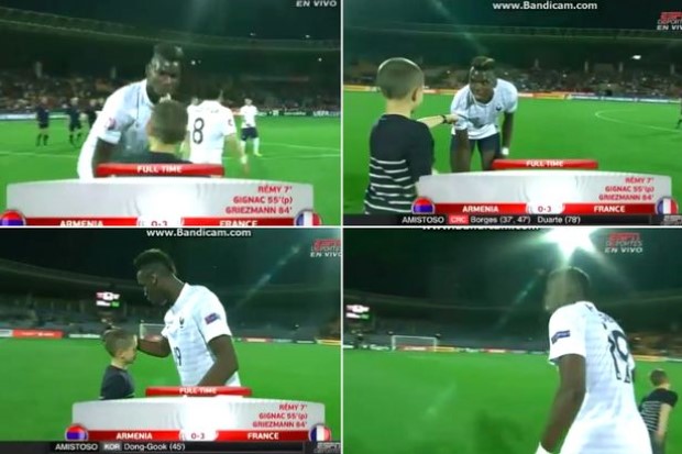 แฟนบอลรุ่นจิ๋วงง หลังลงสนามไปขอเสื้อ "ปอล ป็อกบา" นักเตะฝรั่งเศส แต่เจ้าตัวกลับถอดกางเกงให้แทน
