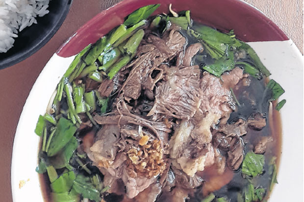 มาถึงร้านนี้แนะนำให้สั่งเกาเหลาเนื้อ แต่ต้องบอกก่อนว่าถ้าไม่หิวจัดอย่าสั่งพิเศษนะครับ เพราะชามจะใหญ่มาก ราคาก็ประมาณ 100 บาท ถ้าธรรมดาก็ประมาณ 60 บาท แต่ก็คุ้มราคานะครับเพราะนอกจากชามโตที่นี่ยังเลือกเนื้อชั้นดี ทั้งเนื้อสด เนื้อเปื่อยที่แสนจะนุ่มลิ้น ยังมีลูกชิ้น ผักบุ้ง เอ็น ไส้ ตับที่ลวกกำลังกิน และยังผักบุ้งใส่มาแบบไม่อั้นบนน้ำซุปที่แสนจะเข้มข้น บอกตรงๆ ว่าฟินครับขอบอกเลย