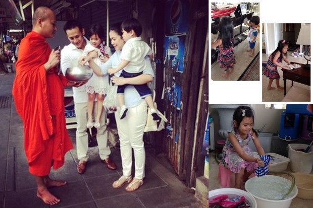 อย่างเช่นวันหยุดเสาร์ - อาทิตย์ ทั้ง2 ต้องช่วยคุณแม่ทำความสะอาดบ้าน ส่วนพี่สาวน้องเวนิสยังมีงานซักผ้ารออยู่อีกหนึ่งหน้าที่ ส่วนวันพิเศษอาทิเช่นวันเกิดคนในครอบครัว แทนที่จะพากันไปกินข้าวนอกบ้าน หรือจัดปาร์ตี้เอิกเกริกกันอย่างเดียว ครอบครัวนี้เขาก็พากันไปทำบุญ ทำทานกันเป็นประจำ เห็นน่ารักแบบนี้ครอบครัวไหนจะเอาไปเป็นตัวอย่าง แม่แบม พ่อโบ๊ทก็ไม่หวงแต่อย่างใด