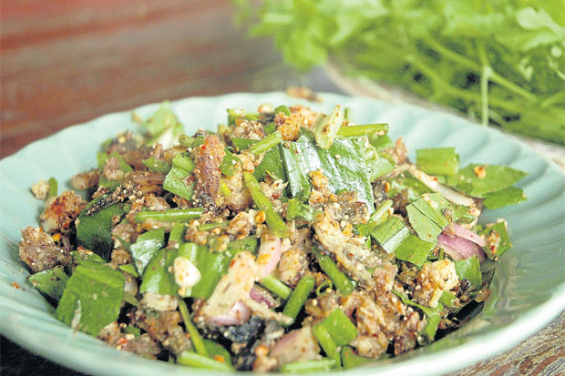 สำหรับเมนูที่นี่ก็มี ลาบกบ ลาบนก ลาบหมู ลาบเนื้อ ป่นปลา ป่นกบราคาก็เพียงจานละ 50 บาทเท่านั้น อาหารชื่อว่า “อ่อม” มีทุกชนิด ส่วนหม้อไฟปลาช่อนราคา 150 บาท สำหรับผักที่นำมาเสริมกินกับลาบเน้นผักป่ากับผักพื้นบ้าน อ้อ...อีกอย่าง สำหรับข้าวนั้นจะเอาข้าวหอมมะลิชั้น 1 มาบริการทั้งสิ้น