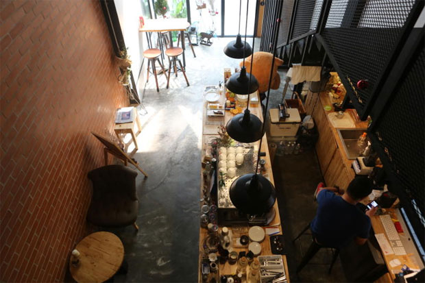 ส่วนใครที่มาเป็นกลุ่ม ขอเชิญบนชั้นลอยแอบมีโต๊ะยาวโชว์หราน่านั่ง และมองเห็นบรรยากาศด้านร้าน และลีลาการชงกาแฟของบาริสต้าแบบเต็มตา
