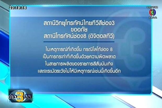 "ช่อง3"ขอโทษปิดโลโก้ทับไมค์"ช่อง8"