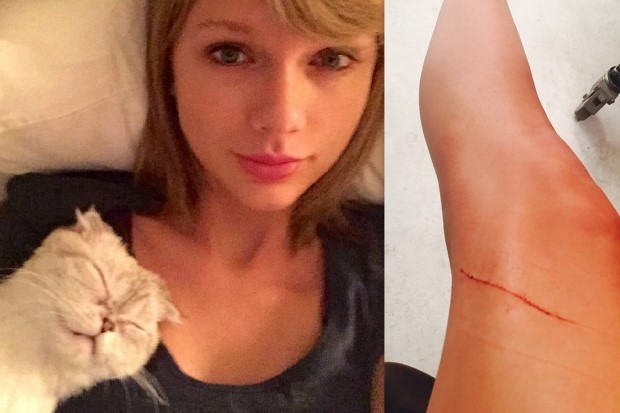 ล่าสุดสาวเทย์เลอร์โพสต์ภาพขาของเธอซึ่งโดนแมวเหมียวที่ชื่อว่า"เมเรดิธ"ข่วนเป็นแนวยาวจนเลือดซิบ พร้อมข้อความแซวๆว่า..."ทำดีมากเจ้าเมเรดิธ ฉันพยายามจะรักมัน และตอนนี้มันก็เป็นหนี้ฉัน 40ล้านเหรียญแล้วนะ!"