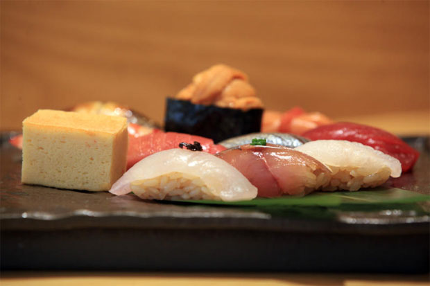 วันนี้เชฟได้จัดซูชิมาให้เราได้ลิ้มชิมรส ไม่ว่าจะเป็น ปลาทูญี่ปุ่น ท็อปด้วยหอมและขิง ปลาทูน่าเนื้อส่วนแดงที่นำไปหมักกับโชยุ ปลาตะเพียนน้ำเค็ม ดองด้วยน้ำส้มสายชู กุ้งลายเสือที่นำไปต้ม หอยแครงญี่ปุ่น ไข่หอยเม่น ปลาไหลทะเล ราดด้วยซอสที่ต้มและเคี่ยวจากน้ำซุปกระดูกปลาไหล บอกได้เลยว่าเมื่อกินซูชิเข้าไปแต่ละคำสามารถรับรู้ถึงรสชาติความอร่อยของข้าวและปลาได้อย่างไม่น่าเชื่อ