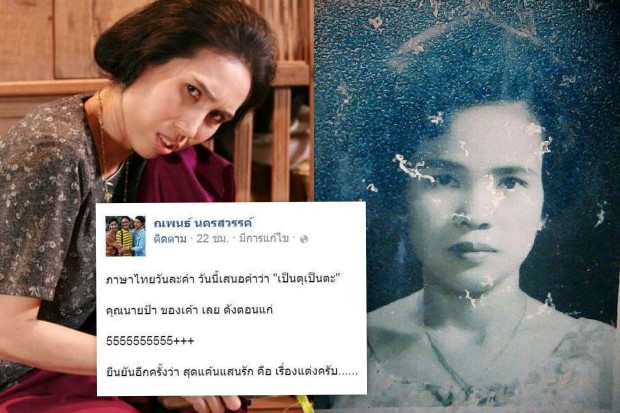 "ภาษาไทยวันละคำ วันนี้เสนอคำว่า "เป็นตุเป็นตะ" คุณนายป้า ของเค้า เลย ดังตอนแก่ 5555555555+++ ยืนยันอีกครั้งว่า สุดแค้นแสนรัก คือ เรื่องแต่งครับ......"