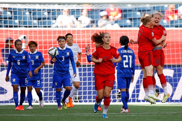 การแข่งขันฟุตบอลหญิงชิงแชมป์โลก 2015 รอบแรก นัดสุดท้ายของกลุ่มบี ที่สนามวินนิเพก ประเทศแคนาดา ทีมชาติไทย ซึ่งอยู่อันดับ 3 ของกลุ่ม พบกับ ทีมชาติเยอรมัน อันดับ 1 ของโลกและจ่าฝูงของกลุ่ม ผลปรากฏว่าทีมชาติสาวไทยพ่ายต่อ เยอรมัน 0-4 ส่งผลให้แข่งครบ 3 นัด เยอรมันผ่านเข้ารอบในฐานะแชมป์กลุ่ม ด้วยผลงานชนะ 2 เสมอ 1 เก็บไป 7 คะแนน ส่วนไทย แข่ง 3 นัด มี 3 คะแนน อยู่อันดับ 3 โดย เยอรมัน ได้ประตูจาก เมลานี่ ลูปอลซ์ ในนาที 24, เลน่า พีเตอร์มันน์ นาที 56 และ 58, ซาร่า เดบริตซ์ นาที 73