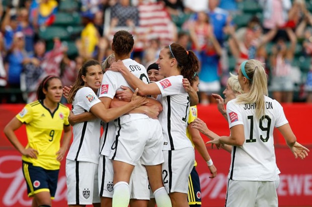 ทีมสหรัฐ เอาชนะ โคลอมเบีย 2-0 รอบ 16 ทีมสุดท้าย ศึกฟุตบอลหญิงชิงแชมป์โลก "ฟีฟา วีเมนส์ เวิลด์ คัพ 2015" ณ คอมมอนเวลธ์ สเตเดียม ที่เอ็ดมอนตัน, แคนาดา ช่วงเช้าวันที่ 23 มิ.ย.ตามเวลาไทย