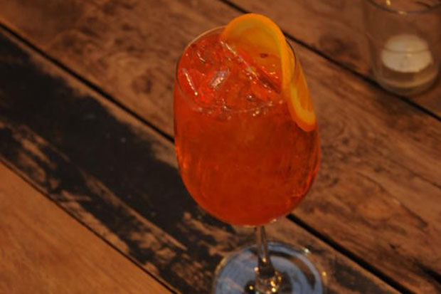 เครื่องดื่มเรียกน้ำย่อยสัญชาติอิตาเลียน อะเพโรล (Aperol) ที่ทำจากบิทเทอร์ส้ม สีม่วงจากธรรมชาติ รูบาร์บ สมุนไพรซิงโคนา