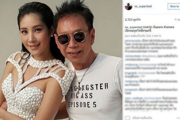 ทั้งนี้เมื่อคืนที่่ผ่านมา นายโสภณ พัชรวีระพงษ์ พ่อของแตงโม ภัทรธิดา ได้โพสต์ข้อความผ่านอินสตาแกรมส่วนตัว @so_superdad ข้อความว่า "6 ก.ค. 58 เจ็บแทน หัวอกคนเป็นพ่อพูดได้สั้น ๆ แค่นี้"