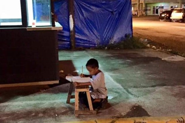 เด็กไร้บ้านชาวฟิลิปปินส์วัย9ชวบสุดใฝ่ดี อาศัยไฟร้านอาหารข้างทางนั่งทำการบ้าน หวังเรียนให้จบ-ทำงานเลี้ยงครอบครัว