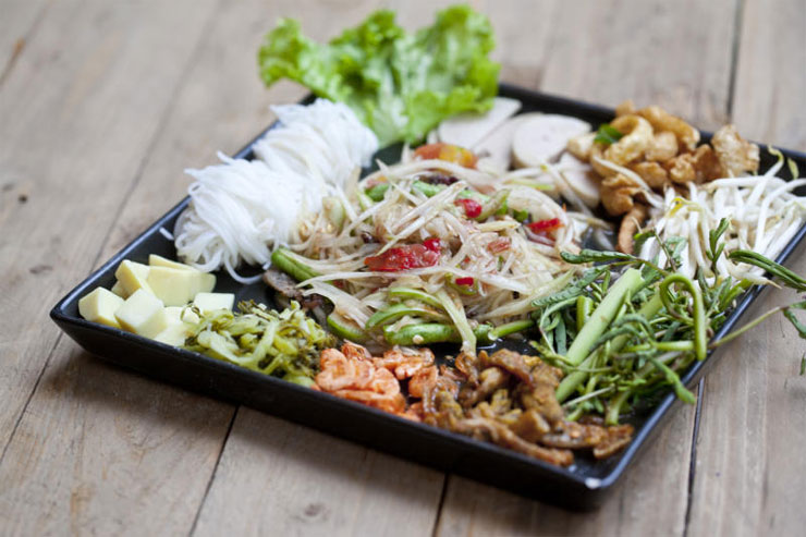 แต่ที่แซ่บอีหลี ก็ต้องยกให้ “ส้มตำถาด” จัดมาถาดขนาดพอเหมาะ 2-3 คนกิน เครื่องเคราส้มตำเห็นแล้วลายตา อะไรต่อมิอะไรมากมายจนบอกไม่ถูก เป็นเมนูที่แกล้มเครื่องดื่มได้ลงตัว เผ็ด เปรี้ยว เค็ม หวานนั่นแล้วแต่ชอบ เชื่อเถอะว่าจะทำให้การมาแฮงที่นี่ตาสว่าง