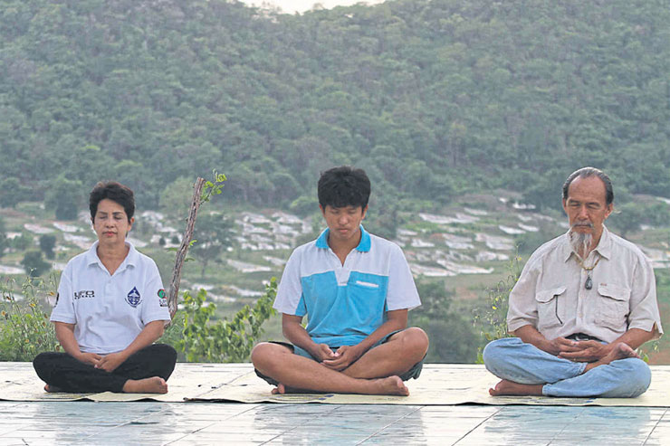 ต่อนี้ให้นั่งขัดสมาธิ เอาขาขวาทับขาซ้าย มือขวาทับมือซ้าย ตั้งกายให้ตรง ดำรงสติให้มั่นอย่าให้ฟั่นเฟือนประนมมือไหว้แล้วระลึกถึงคุณพระพุทธ พระธรรม พระสงฆ์ แต่ในใจว่า พุทโธ เม นาโถ พระพุทธเจ้าเป็นที่พึ่งของข้าพเจ้า, ธัมโม เม นาโถ พระธรรมเป็นที่พึ่งของข้าพเจ้า, สังโฆ เม นาโถ พระสงฆ์เป็นที่พึ่งของข้าพเจ้า แล้วว่าซ้ำอีกว่า พุทโธๆ ธัมโมๆ สังโฆๆ แล้วปล่อยมือลงข้างหน้า บริกรรมภาวนาแต่คำเดียวว่า อรหัง 3 หน