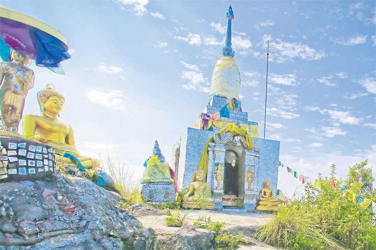ทว่า ความเหนื่อยทั้งหลายมลายหมดสิ้นเมื่อถึงจุดนั้น สิ่งแรกที่ทำคือ กราบไหว้พระธาตุดอยหนอกที่อยู่บนยอด และพลันคิดถึงคนที่นำพาความศรัทธาขึ้นมา จากนั้นพวกเราก็แยกย้ายหามุมส่วนตัว (ที่ไม่ค่อยมีให้เลือก) แล้วดื่มด่ำกับทิวทัศน์รอบตัวในแบบ 360 องศา เก็บภาพ สูดอากาศ ตากเหงื่อ และล้างความเหนื่อยล้า พร้อมเก็บเกี่ยวความชื่นใจ นอกจากนี้ดอยหนอกยังมีคอนเซ็ปต์ ดอยเดียวเที่ยวสี่จังหวัด เห็นทั้งลำปาง พะเยา เชียงราย และเชียงใหม่