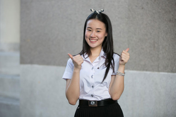 สาวน้อยหน้าใสคนนี้เธอชื่อ ยิม-ณัฐชลาลัย ลิมป์ธนะ นักศึกษาชั้นปีที่ 1 วิทยาลัยผู้ประกอบการ มหาวิทยาลัยหอการค้าไทย