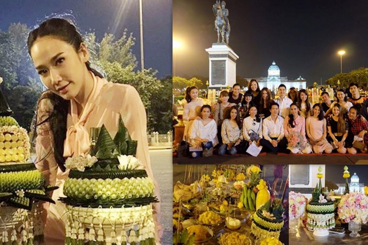 อั้ม พัชราภา นำทีมเพื่อนสนิทถวายพาน ไหว้ขอพร ร. 5 ที่ลานพระบรมรูปทรงม้า เพื่อให้ปอ ทฤษฎี หายป่วย