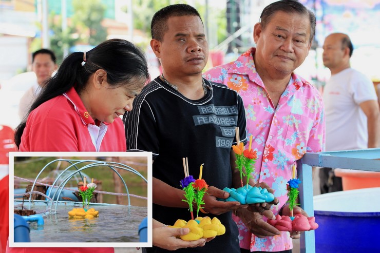 ผัวเมียตาบอดปลื้มได้ลอยกระทง เทศบาลนครรังสิตจัดรางสไลเดอร์เพิ่มความสะดวกให้คนพิการ