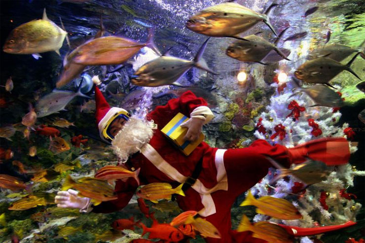 ปีนี้ ซันไชน์ อะควาเรียม ในโตเกียวเองก็ไม่พลาดที่จะจัดบรรยากาศให้ศูนย์แสดงสัตว์น้ำของพวกเขามีกลิ่นอายคริสต์มาส งานนี้นักดำน้ำถูกนำมาแต่งตัวเป็นซานตาคลอสแล้วว่ายน้ำไปมาร่วมกับปลาในสวนน้ำ พร้อมทั้งมีโชว์ต่างๆ แสดงวันละ 2 รอบตั้งแต่วันนี้ไปจนถึง 25 ธ.ค.